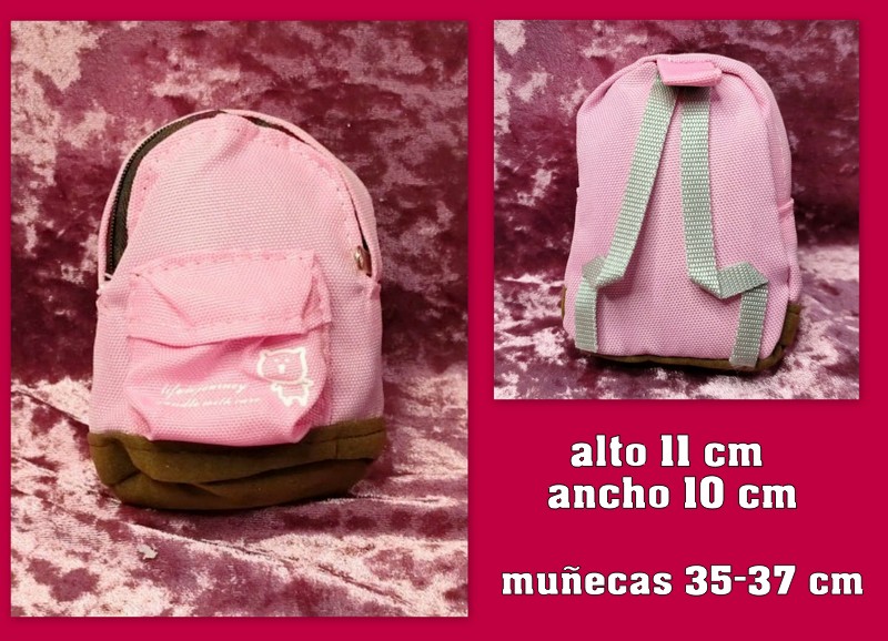 MOCHILAS DE TELA con cremallera color ROSA muñecas de 35-37 cm