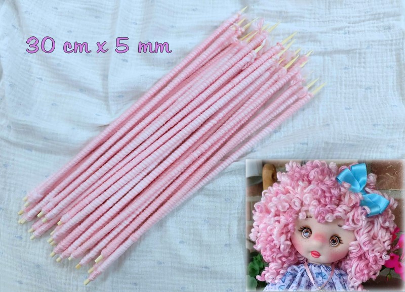 24 PALILLOS RIZADOS Lana doble ROSA