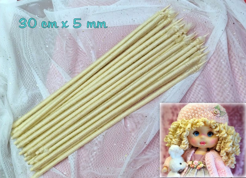 Palillos de lana rizada, cada palillo trae 2 hebras, 24 palillos pelo largo